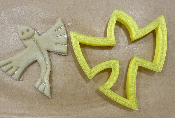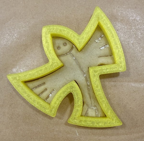 Care must be taken while removing the excess dough- its easy to bend the wings or tail out of position. This additional cutter (STL file HERE) can be used as a guide to help straighten the cut dough before the freezing step: