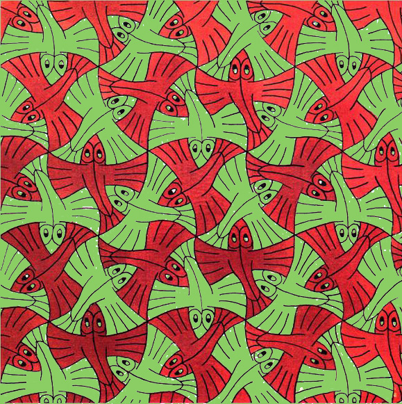 Geometry was my favorite subject in junior high, no more so than after discovering the wonders of M.C. Escher. So when it was time to bake holiday cookies, my thoughts turned to this astonishing tessellation: